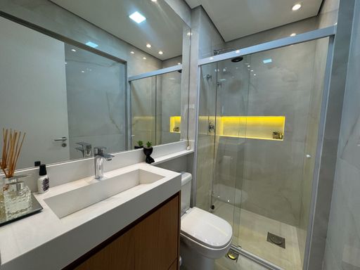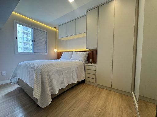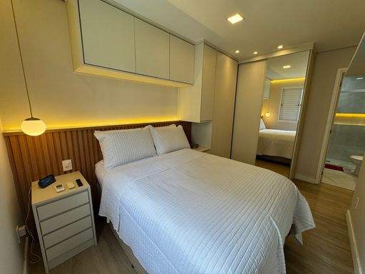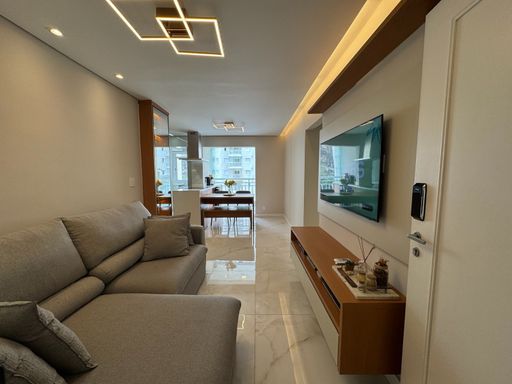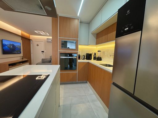 Possui móveis planejados em todos os ambientes, porcelanato e bancada em quartzo branco, garantindo um visual moderno e elegante. Conta ainda com 1 vaga de garagem.