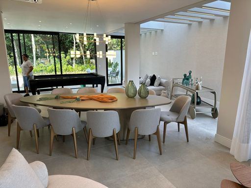 CASA 06 suítes, e mais 1 dependência completa de empregada com quarto e banheiro. FACHADA com Revestimento NERO MARQUINA, com Vidros TRANSPARENTES, e PORTA de entrada em ACM-ALUMÍNIO; Sala de Estar e TV, Móveis e Decoração de Alto Padrão, BRETON; PERGOLADO decorado com móveis e vidro, no teto. Mobiliário Embutido, SCA; Mobiliário área externa e gourmet de alto padrão, WEMOVEIS; Eletrodomésticos, sendo Coifa-Depurador e Fogão c/ forno de piso (ELETROMEC), Micro-ondas e 02 Refrigeradores (GORENGE), Área Gourmet, com churrasqueira, grelha, coifa, chaminé alta com exaustor, Choppeira CARMONA, fabricante CARMONA; Piscina com Prainha e Hidromassagem, com preparação p/ trocador de calor; Banheiro de Piscina; Chuveirão de Praia; Porta de Entrada Altura Total de 6,10 mts, em Alumínio ACM Preto, ALFRAME; Fechadura da Porta de Entrada, Biométrica, digital YALE; Lavabo; Dependência de empregada completa; Área de serviço com armário SCA; Aquecedor a gás, integrado, para toda a Casa, torneiras e duchas banheiros; Bicicletário; Casa de armazenamento de Gás, para 02 botijões; Casa de máquinas da Piscina; Caixa d'água com armazenamento de água 10.000 lts, com Pressurizador; Ar condicionado nas 06 suítes, tipo Split; Ar condicionado Cassette, sendo 02, nas salas de Estar e Jantar; TV's, nas 6 suítes, na sala de Estar/TV; Duchas nas suítes, com aquecimento a gás; Box de vidro temperado, nos banheiros das suítes, até o teto; Metais DECA nas côres INOX, BLACK, RED GOLD e GOLD; Armários nos 06 quartos das suítes, SCA; Armários nas suítes 5 Master e suíte 6, SCA; Cabeceiras das camas de madeira, SCA; Papel de parede nas cabeceiras das camas, nos quartos; Cortinas nas 06 suítes, Cortineiros e Cabeceiras com luz de LED; Camas nas 06 Suítes: no pavimento térreo: suíte 1 térrea: 01 cama QUEEN no pavimento superior: suite 2: 01 cama QUEEN suíte 3: 02 camas SOLTEIRO suíte 4: 02 camas SOLTEIRO suíte 5 Master: 01 cama KING suíte 6: 01 cama QUEEN; Banheiro suíte 5 Master: com Banheira Victoriana e metais RED GOLD; Casa será entregue, completa. Janelas das suítes dos quartos, com acionamento elétrico de abertura e fechamento 100 % com controle remoto; Jardinagem completa, e jardim vertical na lateral esquerda da Casa, na Piscina; Automação; Telão externo na Piscina. Descubra a Riviera de São Lourenço, um refúgio à beira-mar a apenas 120 km de São Paulo, com praias deslumbrantes e uma variedade de opções de entretenimento. A Riviera é o destino perfeito para escapar da agitação da cidade grande. Entre em contato: Tel: 13 3271-4448 / 13 99757-4448 Viva Santos Imóveis, Viva novas conquistas…