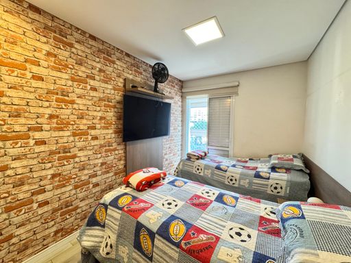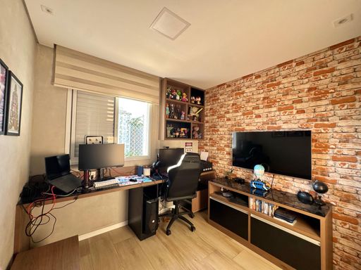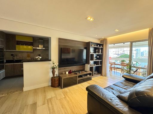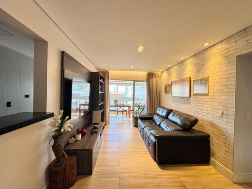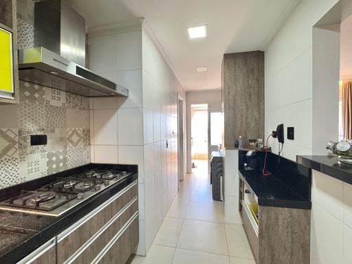 O imóvel conta com 3 dormitórios, sendo um deles suíte, um dos quartos com acesso à varanda, sala ampla para 2 ambientes, um banheiro social, banheiro de serviço usado como lavabo, cozinha tipo americana, com acesso para varanda gourmet.