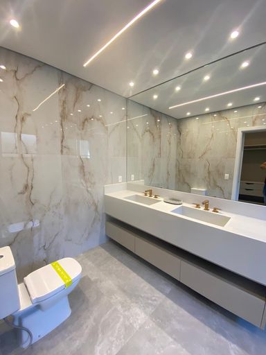 - Box de vidro temperado, nos banheiros das suites, até o teto;