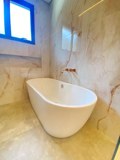 - Banheiro suíte 5 Master: com Banheira Victoriana e metais RED GOLD;